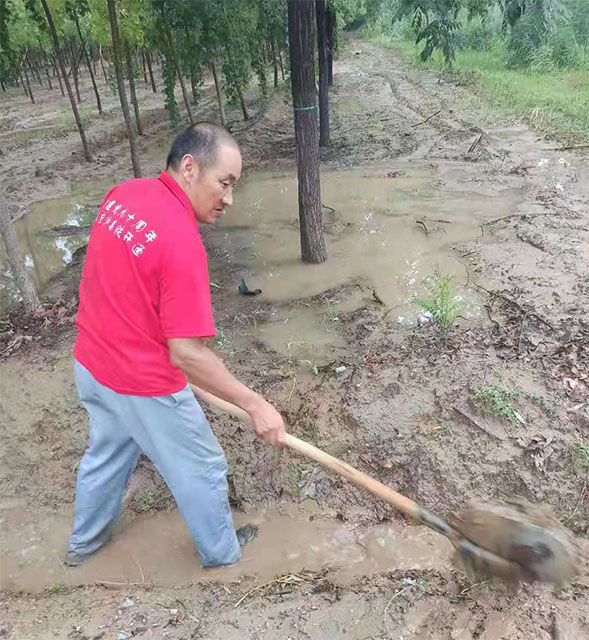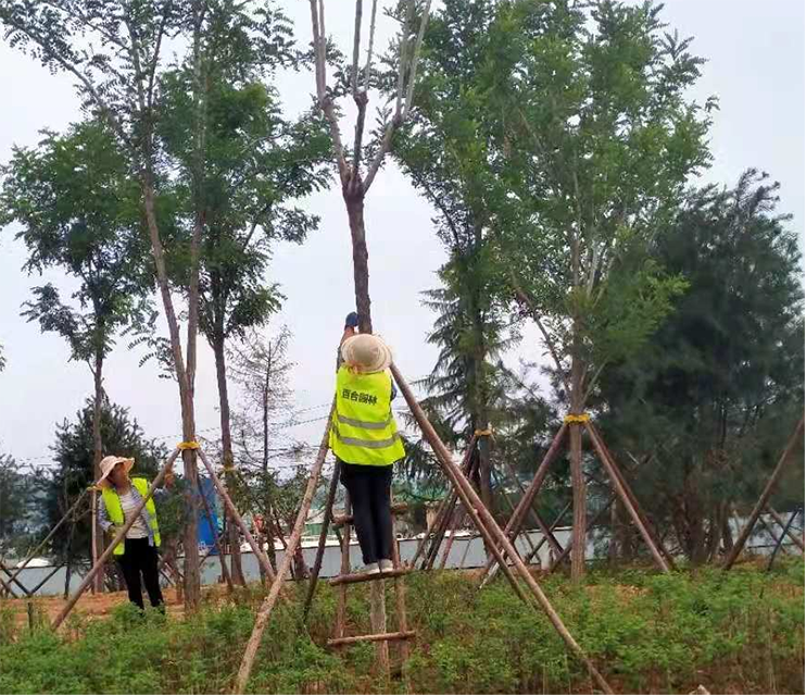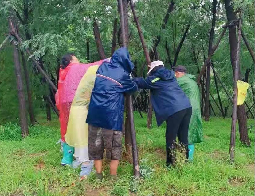 狂風暴雨后,大家全力投入到一線中,對苗圃基地及各項目進行汛情檢查,及時疏通排水渠、做好沙袋防洪,設置安全警示標牌、安全隔離護欄、扶正倒伏苗木等工作。