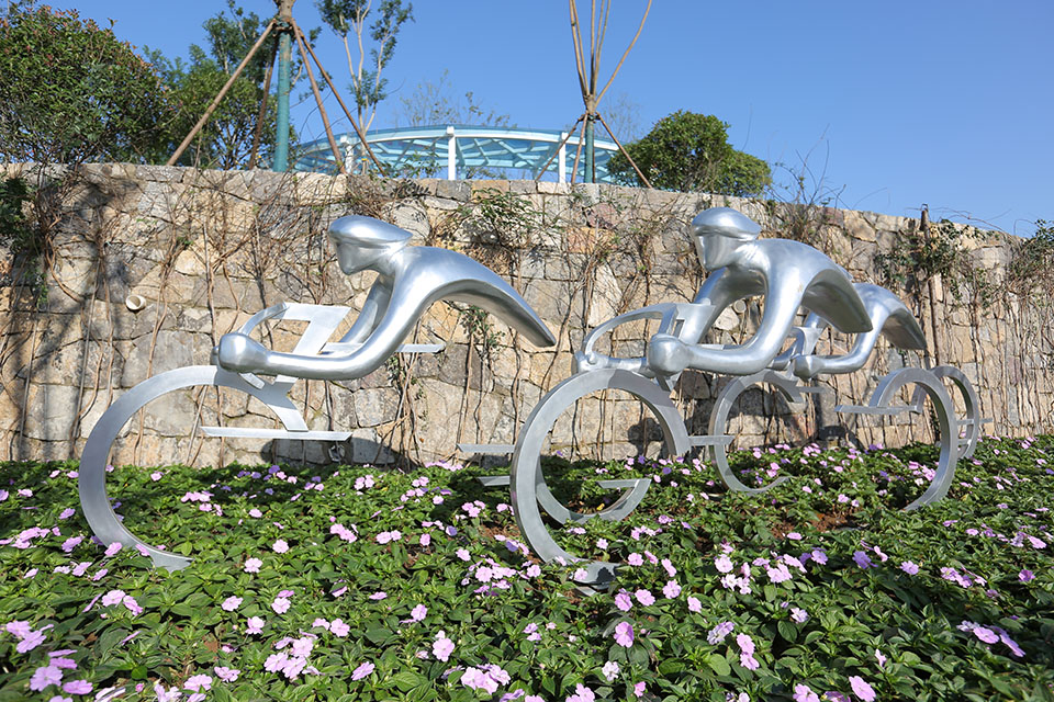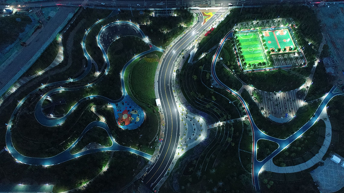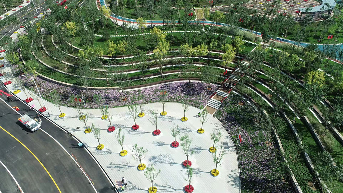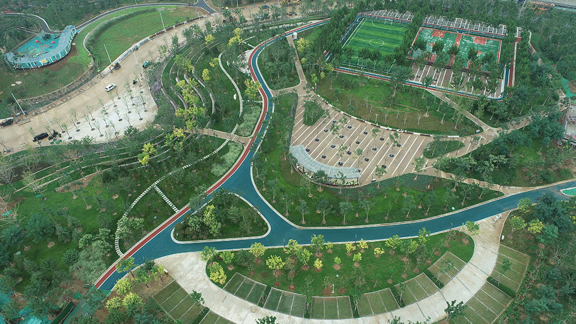 該公園占地面積10.7萬(wàn)平方米,建設(shè)之前,為一建筑渣土場(chǎng),建設(shè)中借用了原有渣土堆積形成的臺(tái)地,布置園林景觀,同時(shí)導(dǎo)入多元的文化活動(dòng)內(nèi)容,強(qiáng)化全齡、復(fù)合的體育、休閑活動(dòng)空間功能。結(jié)合體育運(yùn)動(dòng)文化、社區(qū)活力文化、都市現(xiàn)代文化、科普認(rèn)知文化,在重要景觀節(jié)點(diǎn)位置,布置相應(yīng)的雕塑小品等設(shè)施豐富文化內(nèi)涵。