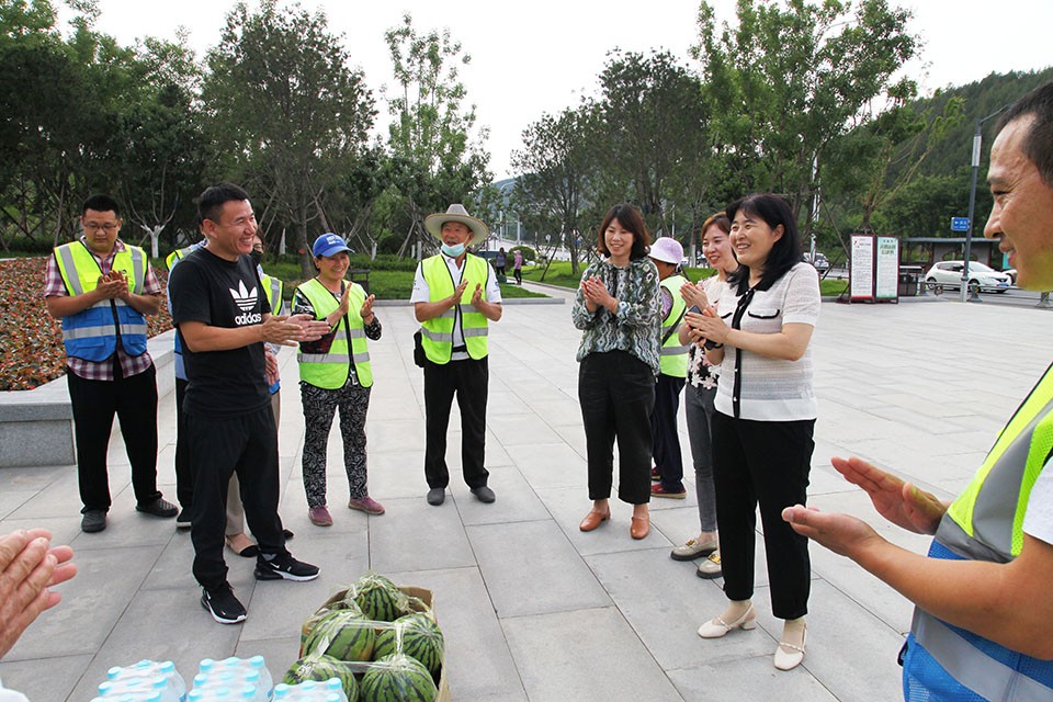 6月21日開始,濟南迎來罕見的高溫酷暑天氣。 受趙國懷董事長委托,百合園林集團領導班子成員帶領工會、綜合管理部人員,分別走訪慰問堅守崗位的一線員工,為大家送去綠豆、西瓜、藥品等防暑降溫慰問品。向他們不畏高溫,堅守崗位的辛勤工作表示感謝,并叮囑員工把安全放到第一位,合理支配時間,注意勞逸結合,工會和綜合管理部表示,會持續(xù)為一線做好后勤保障服務,大家齊心協(xié)力,共同應對高溫天氣給工作帶來的困難和不便,確保公司各項工作有條不紊地進行。