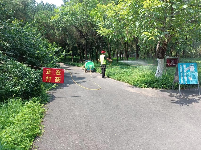 進場后,公司根據(jù)景區(qū)環(huán)境情況,積極配備人員、設(shè)備,養(yǎng)護人員迅速展開苗木修剪、病蟲害防治、修剪草坪、消殺及衛(wèi)生保潔等多項管理工作,各項工作有條不紊進行。
