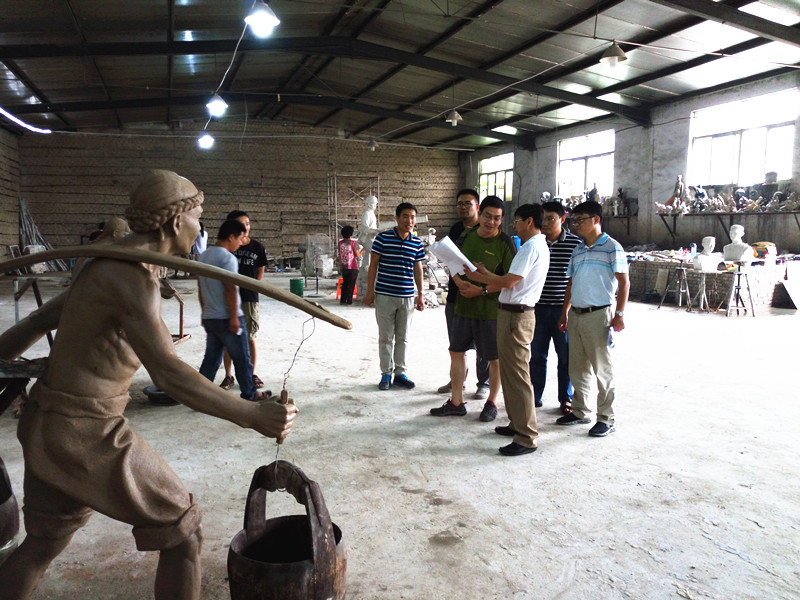 楊波查看了五蓮軒雕塑泥稿,對五蓮軒雕塑中一些人物、物件以及后期的安裝擺放提出了指導(dǎo)性意見,聽取了泉水民俗體驗館文化策劃的匯報,對方案內(nèi)容予以肯定,并對“室內(nèi)設(shè)計如何能更好的體現(xiàn)泉水這一主題”提出了改造意見,要求將體驗做足,增加泉水元素。