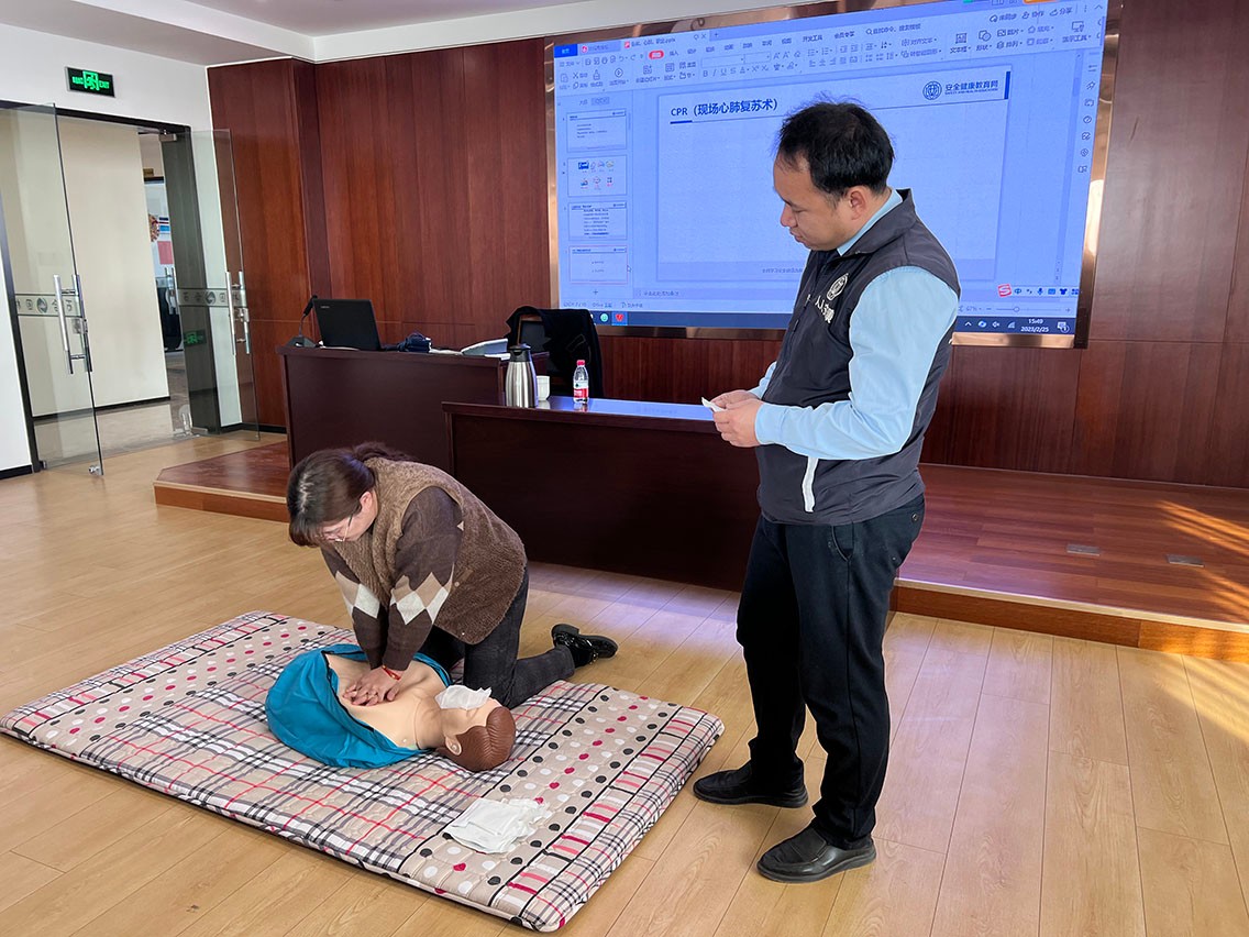 培訓(xùn)中,專家通過圖片、視頻展示,生動(dòng)的講解了突發(fā)事故突發(fā)急癥院外緊急救護(hù)常識(shí)、職業(yè)病防治法宣傳、心腦血管疾病的防治等相關(guān)知識(shí)。同時(shí),為提高應(yīng)對(duì)突發(fā)事件的實(shí)操能力,特安排了實(shí)操環(huán)節(jié),專家結(jié)合現(xiàn)場(chǎng)實(shí)操,進(jìn)行細(xì)致的講解和指導(dǎo),大家積極參與到正確實(shí)施CPR現(xiàn)場(chǎng)心肺復(fù)蘇應(yīng)急救護(hù)中,大家按照操作步驟,做好標(biāo)準(zhǔn)動(dòng)作,每個(gè)環(huán)節(jié)銜接順暢,緊張而高效地完成了每個(gè)關(guān)鍵環(huán)節(jié),圓滿的完成了實(shí)操環(huán)節(jié)。