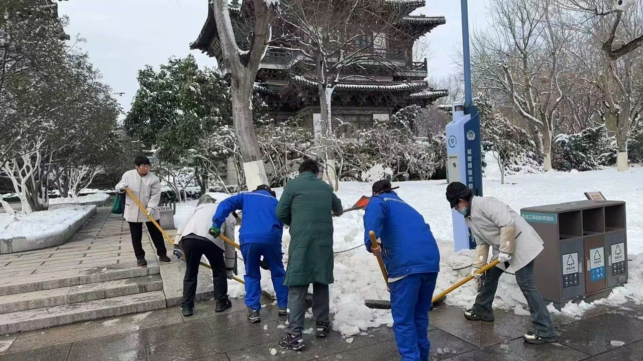 齊心協(xié)力戰(zhàn)冰雪 | 百合園林掃出“暖心路” 。 以雪為令,百合園林在保障區(qū)域各大干道,掃出一條條“”暖心路”。
