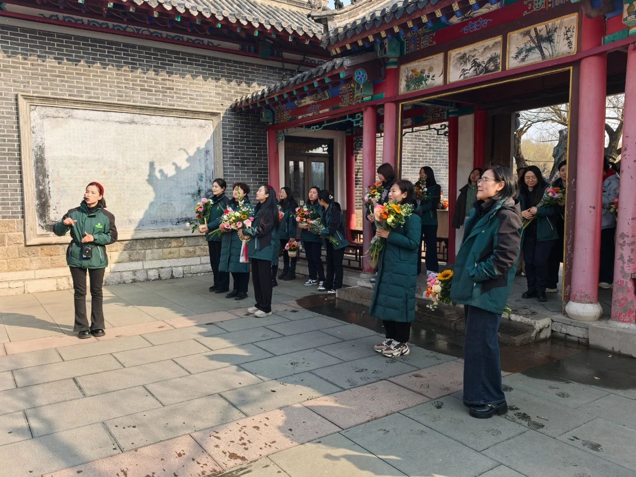 隨后,女職工們?cè)邗r花的“簇?fù)?rdquo;下齊游歷下亭島,旅開(kāi)公司金牌導(dǎo)游員為大家講述“海右此亭古,濟(jì)南名士多”的故事……