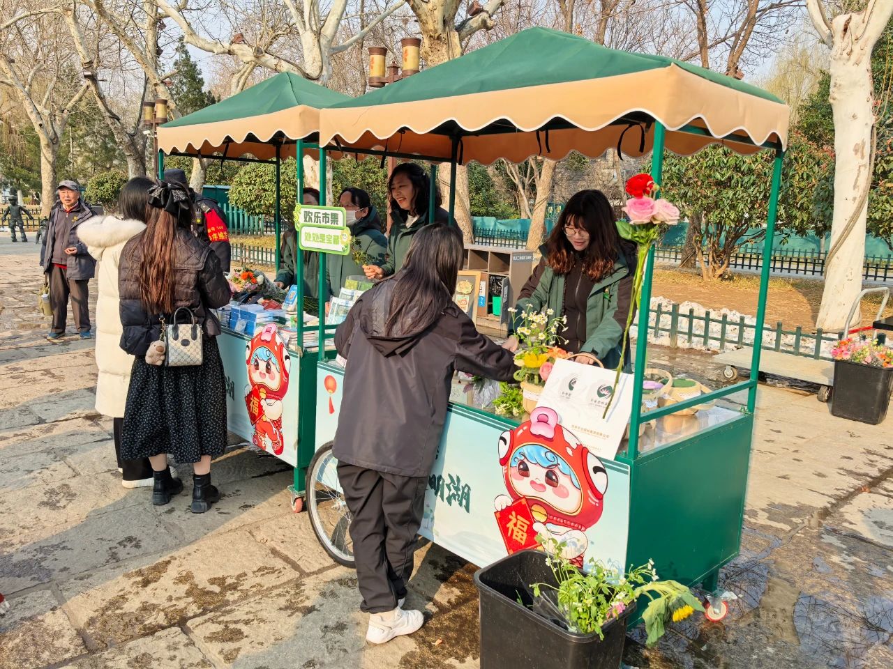 為進(jìn)一步深化黨建與生產(chǎn)經(jīng)營(yíng)相融共促,百合園林集團(tuán)黨總支與旅開(kāi)公司黨總支于活動(dòng)當(dāng)天在正誼廣場(chǎng)“湖畔雨荷”花燈旁設(shè)立攤位,同步開(kāi)通直播,共同宣傳天下第一泉景區(qū)文創(chuàng)產(chǎn)品和百合園林集團(tuán)專屬花藝體驗(yàn)活動(dòng)。