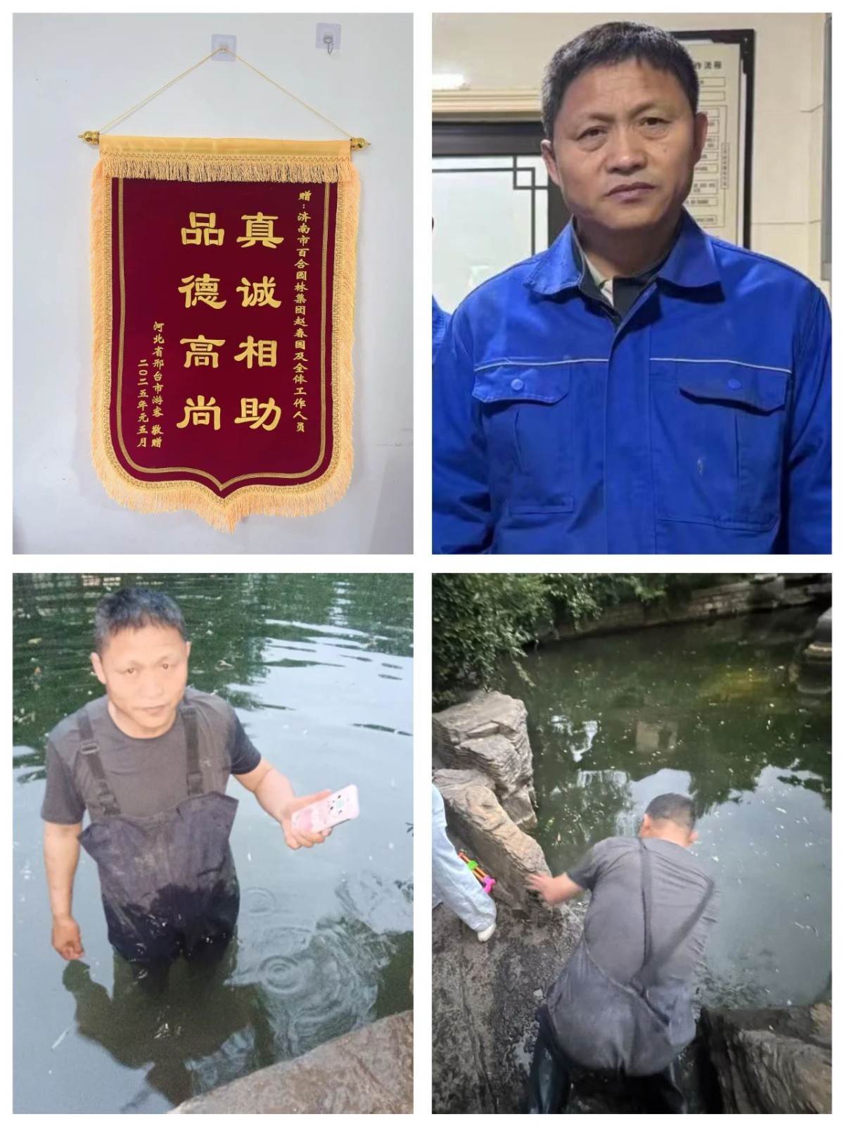 5月4日18時許,河北籍游客張女士在趵突泉景區(qū)水街游覽時不慎將手機掉落泉池。面對客流高峰時段突發(fā)狀況,百合園林趵突泉養(yǎng)護項目部工人趙春國先以撈網(wǎng)工具嘗試打撈未果后,果斷下池作業(yè),最終在深厚淤泥中成功尋獲手機。獲助游客返程后特制錦旗致謝項目部,該事件充分彰顯百合園林集團一線工人的專業(yè)素養(yǎng)與責(zé)任擔(dān)當(dāng),也為游客美好的泉城之行增添了一份溫暖。