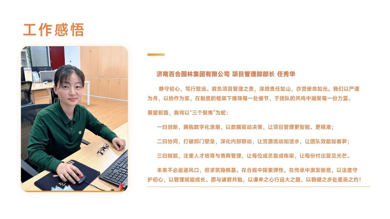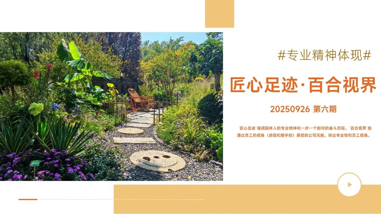 匠心足跡 強調(diào)園林人的專業(yè)精神和一步一個腳印的奮斗歷程。“百合視界“指通過員工的視角(感悟和隨手拍)展現(xiàn)的公司風(fēng)貌。突出專業(yè)性和員工視角。