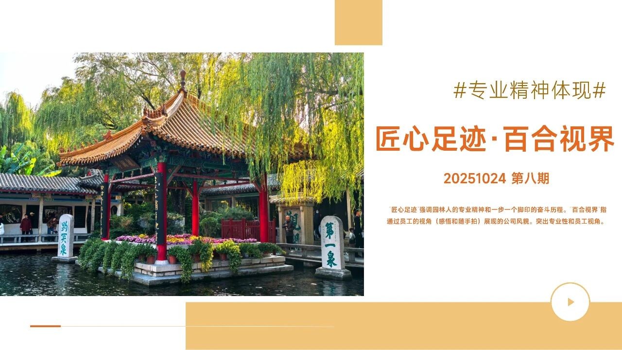 匠心足跡 強調(diào)園林人的專業(yè)精神和一步一個腳印的奮斗歷程。“百合視界“指通過員工的視角(感悟和隨手拍)展現(xiàn)的公司風貌。突出專業(yè)性和員工視角。